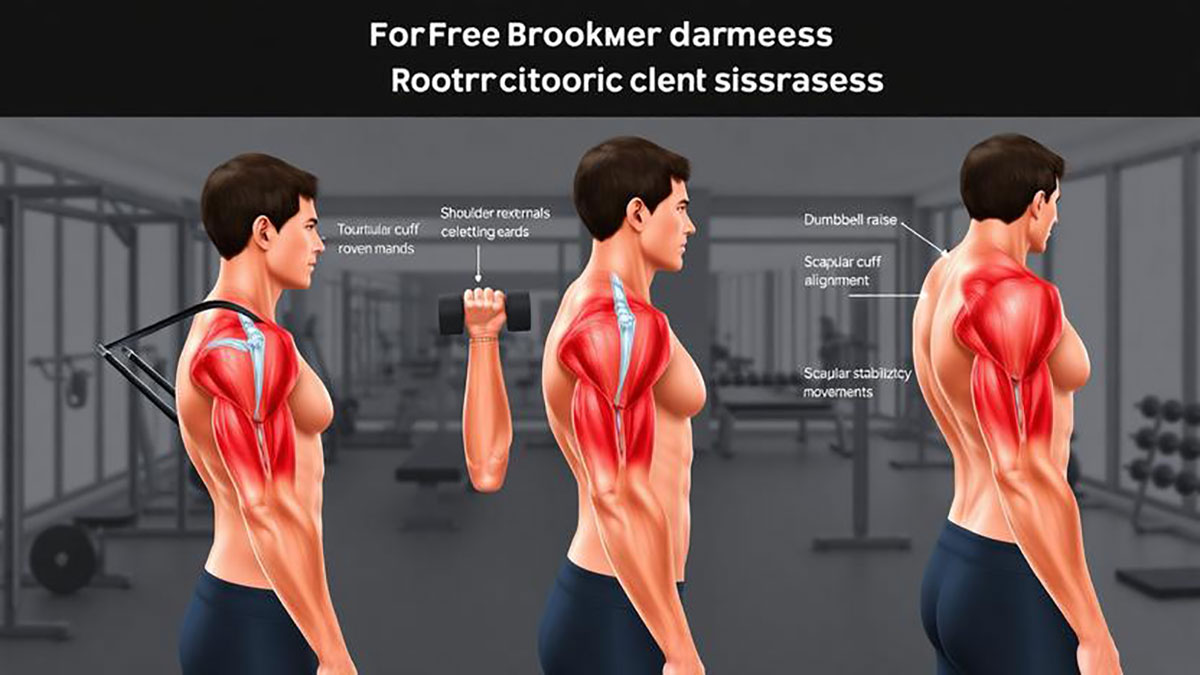 Selain latihan bahu utama, tambahkan latihan penguatan otot penstabil seperti rotator cuff internal dan eksternal rotation menggunakan resistance band atau dumbbell ringan. Otot-otot ini membantu menjaga sendi bahu tetap stabil saat bergerak.